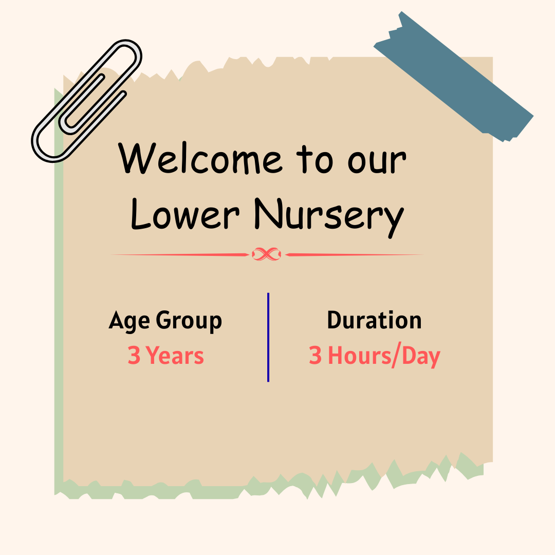 The Lower Nursery program builds upon a child’s early experiences and introduces structured learning in a playful and engaging way. Children begin to understand routines, express themselves, and explore basic concepts through everyday activities.