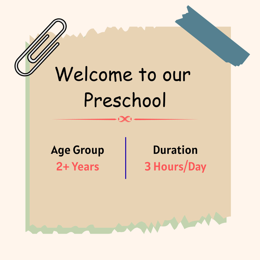 A Preschool day includes free play, rhymes, storytelling, creative activities, snack time, and plenty of opportunities for interaction and movement.